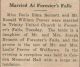 Leslie Allan Peever, farmer, widower, 35, b. Bromley Twp; m. Winnie Mary Ryan, teacher, spinster, 30; Roman Catholic; b. Prescott; witnesses: Winnifred I Peever, Cobden & Bernnice Blackwell, Cobden; at Renfrew, Jul 3, 1924; s/o Thomas F Peever b. Renfrew Co; & Merinda Francis; d/o Moses or Moris Ryan b. Prescott and Margaret Fischer; by Edward B Horne, Renfrew, Presbyterian